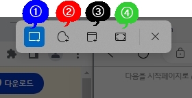 ④ 전체화면캡처 : 화면 전체를 캡처한다. 단축키는 PrtScn 이다.