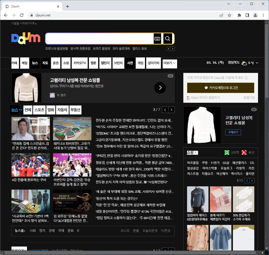 이 값을 설정한 후 오른쪽 아래의 Relaunch 버튼을 누르면 크롬을 재시작하면서 모든 웹페이지가 다크모드로 나오게 된다. 이게 진정한 다크모드이기는 하지만, 아무래도 각각의 웹사이트들이 흰색바탕을 기준으로 색조합을 만들었기에 어색해보이는 부분이 눈에 많이 띌것이다.